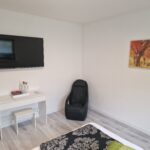 Das geschmackvoll eingerichtete Zimmer bietet alles für einen entspannten und komfortablen Aufenthalt. Kostenloser Parkplatz befindet sich direkt vor dem Haus. Im Mittelpunkt steht ein Queen Size Bett (140×200 cm), das erholsamen Schlaf garantiert. Der Nachttisch verfügt über eine Ladefunktion zum Aufladen des Handys oder Tablets. Kostenloser W-Lan Zugang steht zur Verfügung. Für Unterhaltung sorgt ein moderner TV, während der vorhandene Massagesessel perfekte Entspannung nach einem erlebnisreichen Tag bietet. Ein praktischer Schreibtisch steht zum Arbeiten oder Planen Ihrer Ausflüge bereit. Der geräumige Kleiderschrank bietet ausreichend Stauraum für Kleidung und persönliche Gegenstände. Die harmonische Einrichtung schafft eine angenehme Wohlfühlatmosphäre, ideal für Urlaub und Erholung.